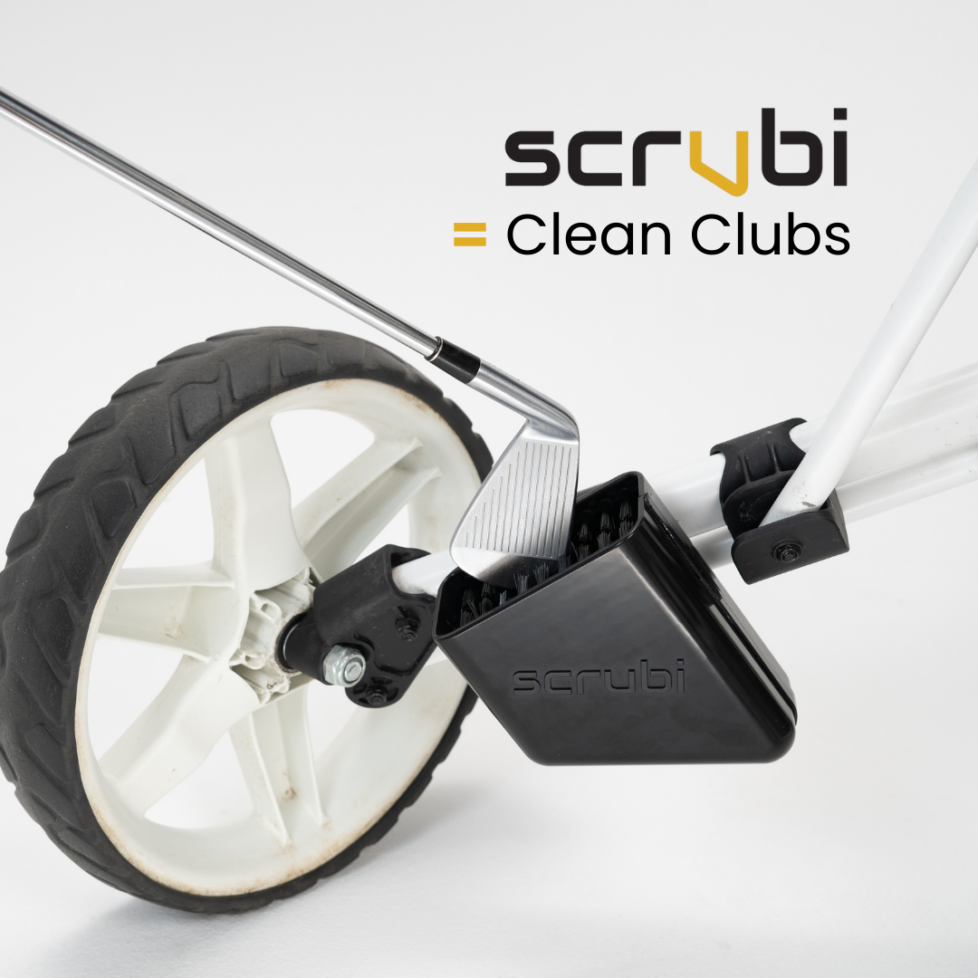 Scrubi is an on-course golf club cleaning tool, engineered specifically for 3-wheel Clicgear pushcarts.